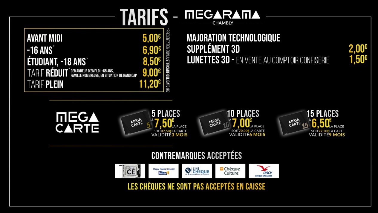 Afin de vous accueillir dans les meilleures conditions possibles merci de prendre contact par mail : megarama.chambly@gmail.com